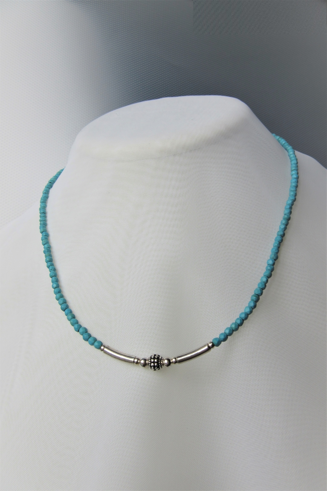 Dainty Faceted Turquenite With Bali Bead Center Necklace