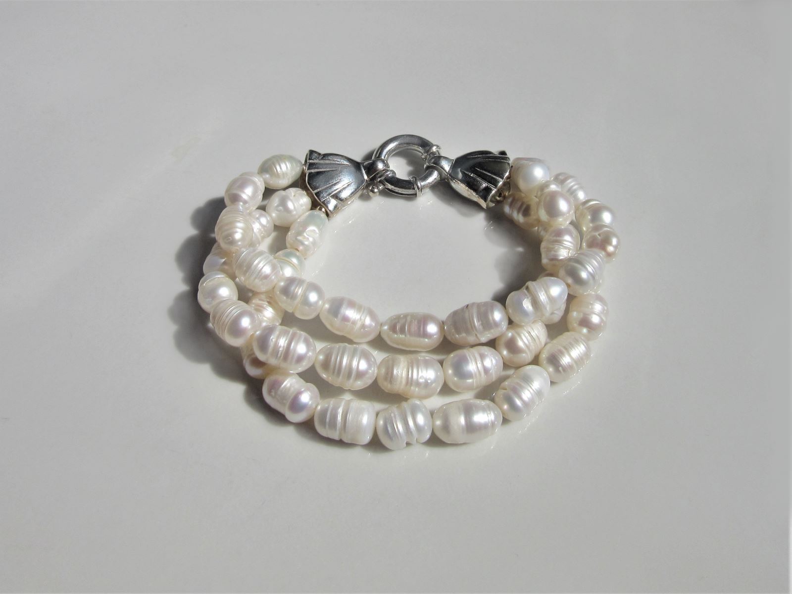 Three Strand White Pearl Bracelet
