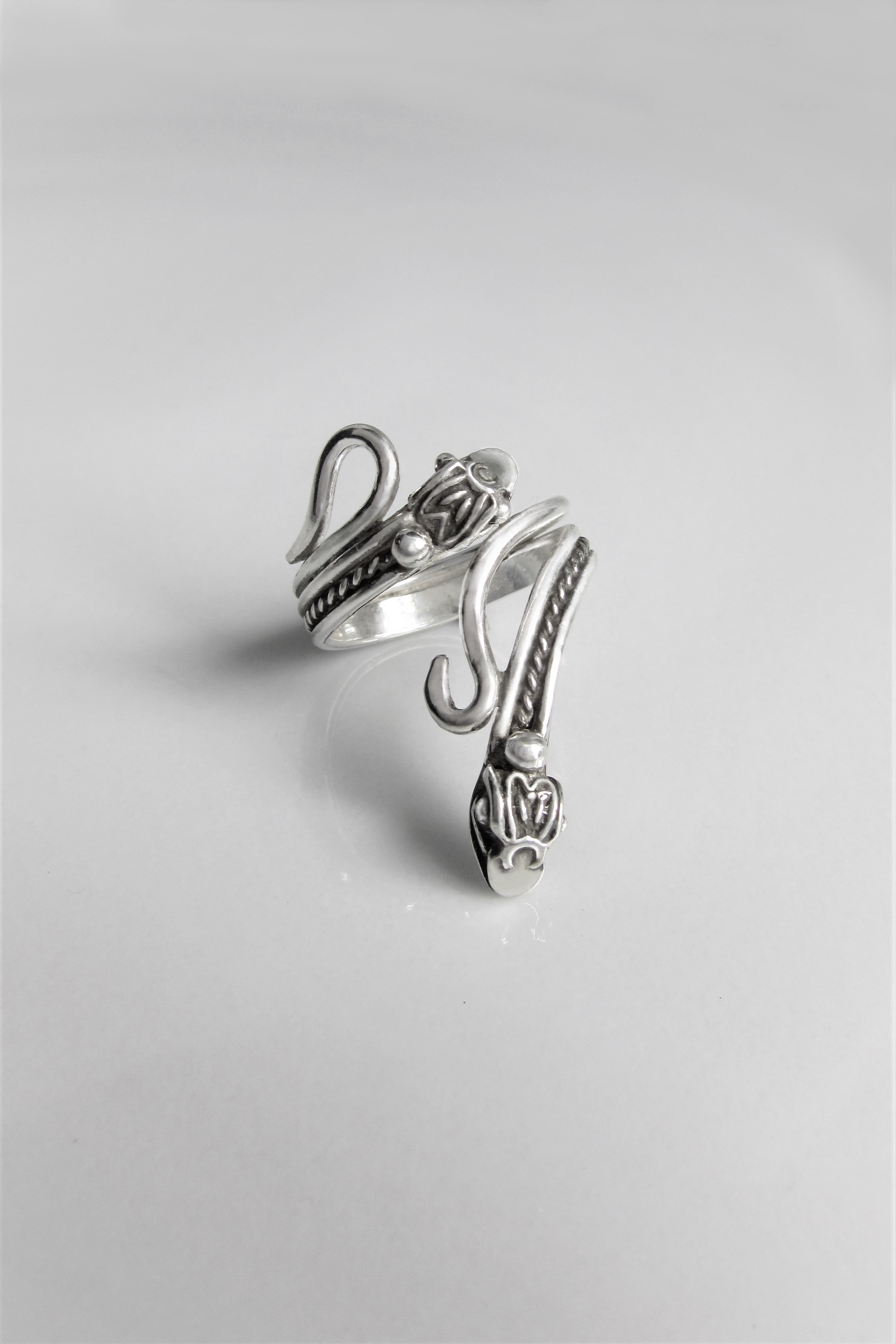 The only thing better than a single serpent is a slithering duo! Intricately embellished with handcrafted Sterling Silver ornaments, these scaley twins are a surefire way to add a unique twist to your everyday jewelry. Elegantly twirling their way around your fingers, this venomous statement piece is impossible not to love.