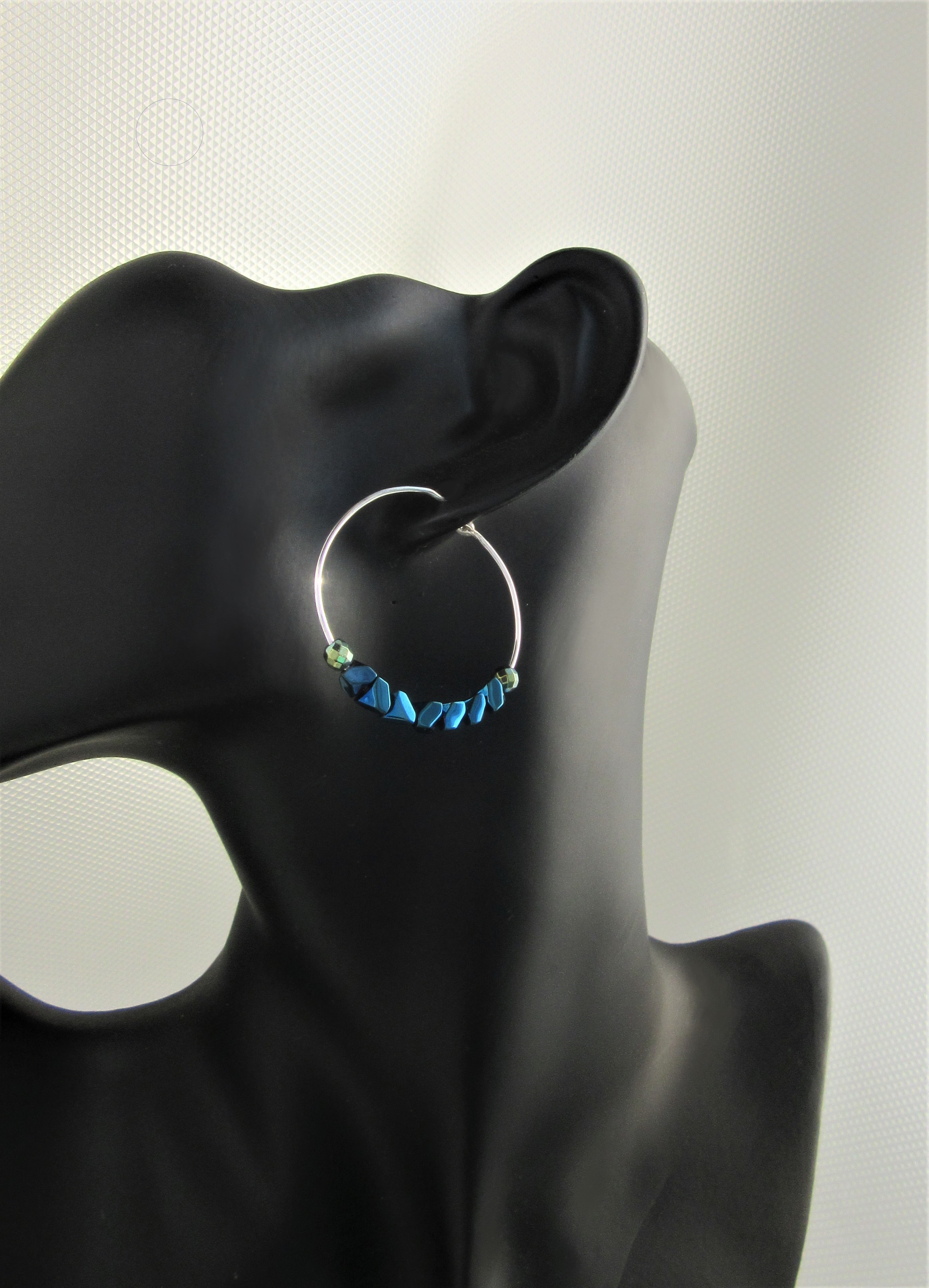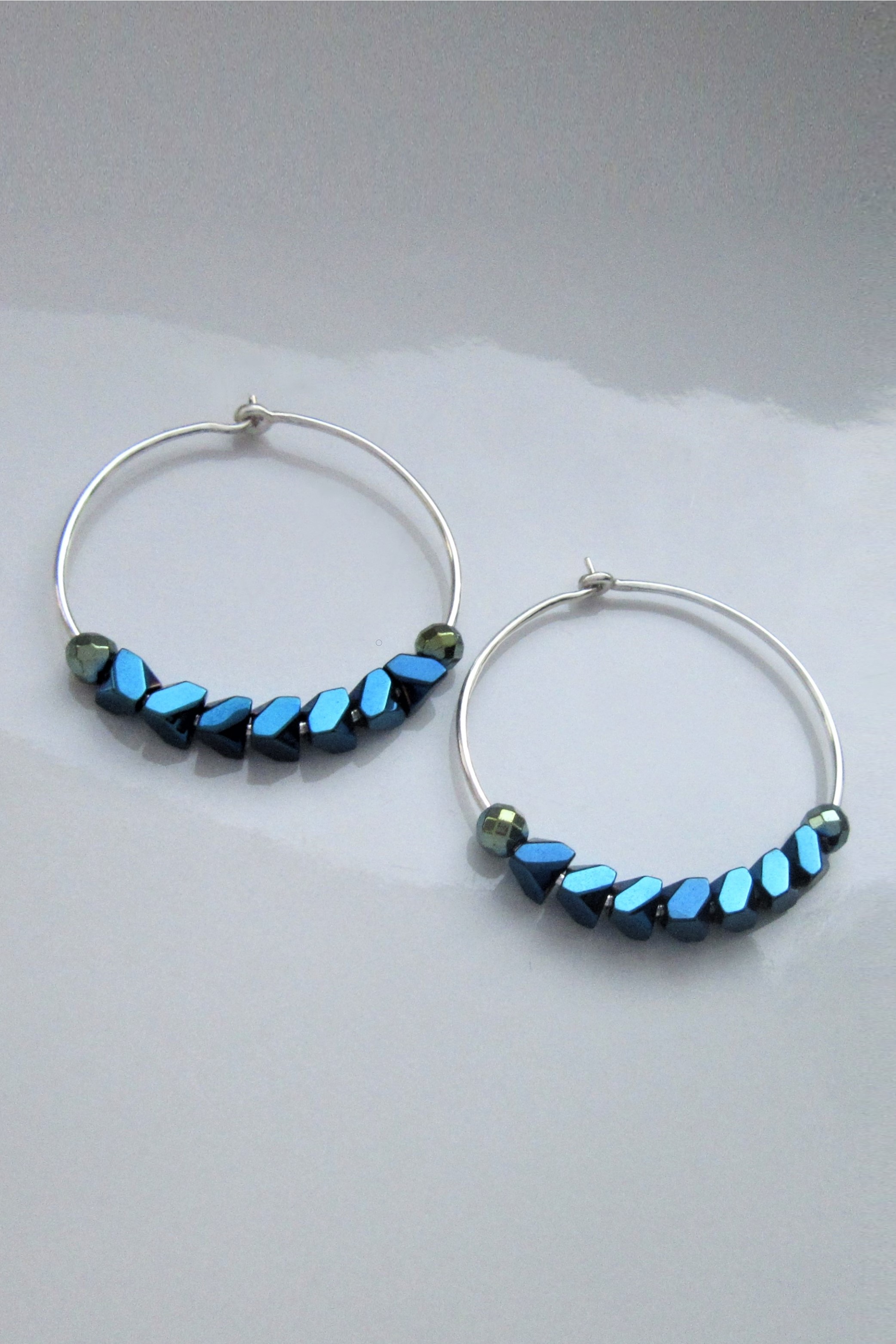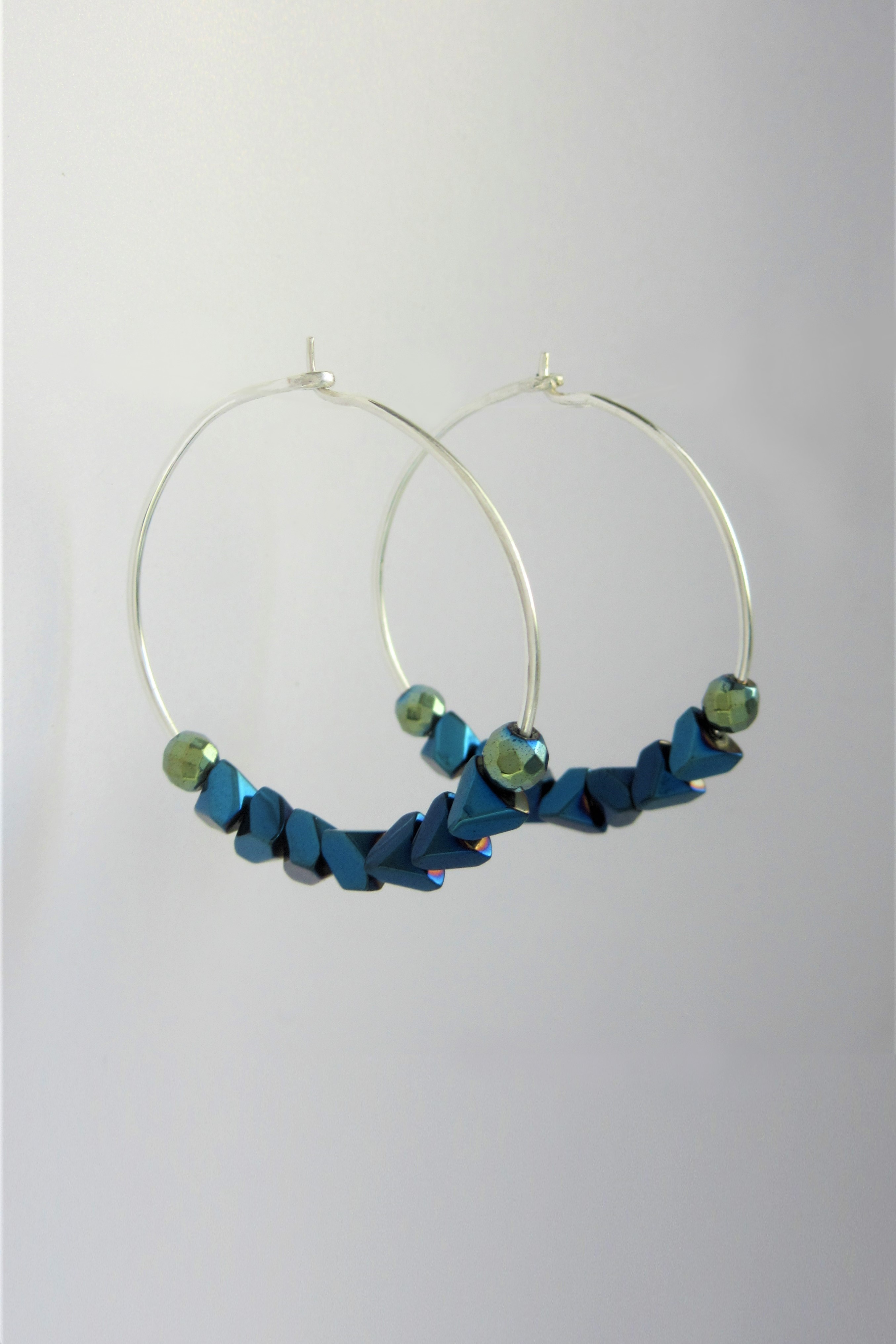Indigo Aura Hematite Hoops